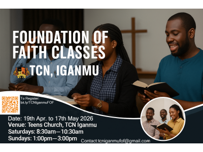 Thank you for registering and/or enrolling in this session of the Foundation of Faith Course, which will be held physically at The Covenant Place, Iganmu, from Sunday, 19th April 2026, to Saturday, 16th May 2026.